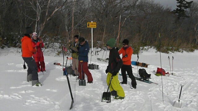 登り道具、バックの中身、地図、ウェアのレイヤリング、地形・雪崩、雪層チェック、埋没者検索、プチツアー、非常時のソリ作りなどなど