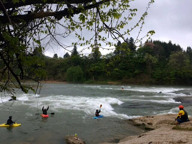 本日も朝日町最上川でフリースタイルカヤックレッスン