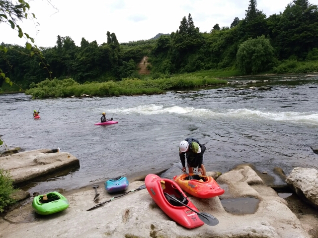 本日も最上川朝日町カヌーランドでフリースタイルカヤックレッスン
