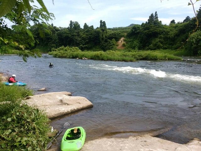 草陰静水でスターンラダー、小屋横ウェーブでフロントサーフィン
