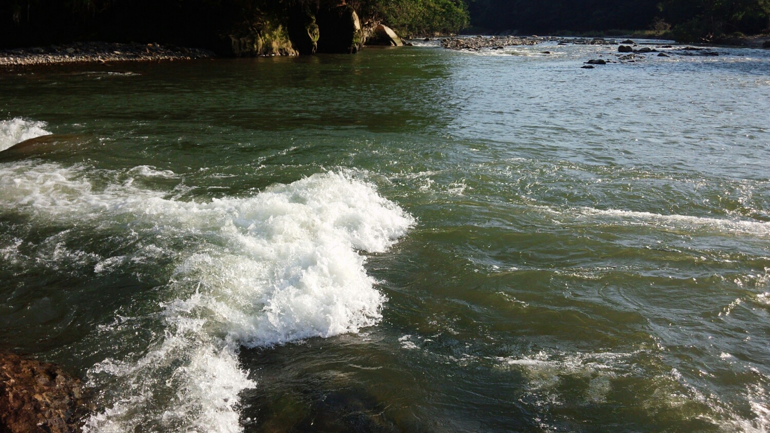 この前の大増水で岩が流れニュースポットが現れました