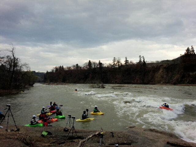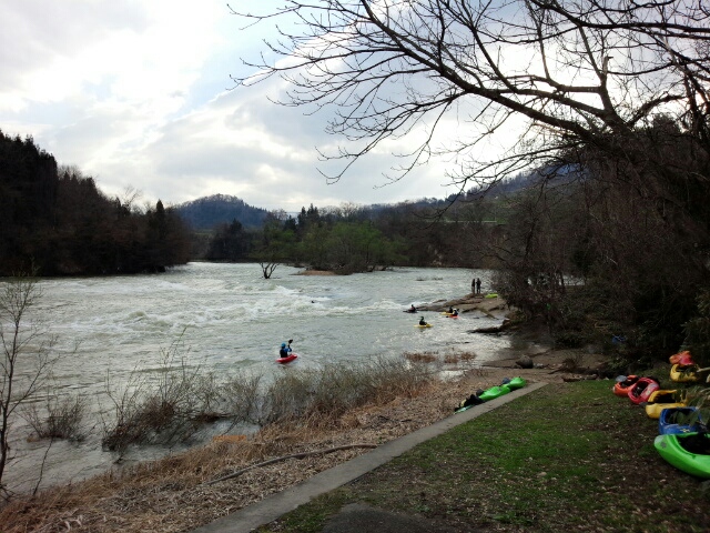 週末に開催するフリースタイルカヤック大会の準備してました