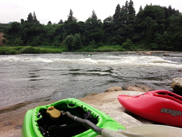 本日も朝日町カヌーランドでフリースタイルカヤックレッスン