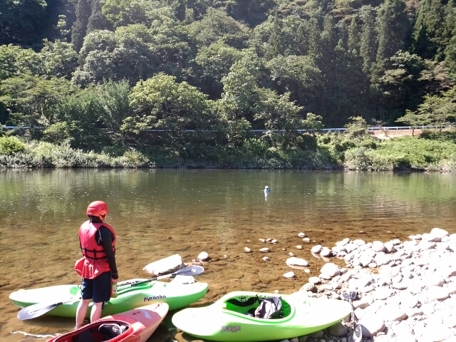 砂浜静水で基本操作をレッスン、後半はタンの瀬までショートダウンリバー