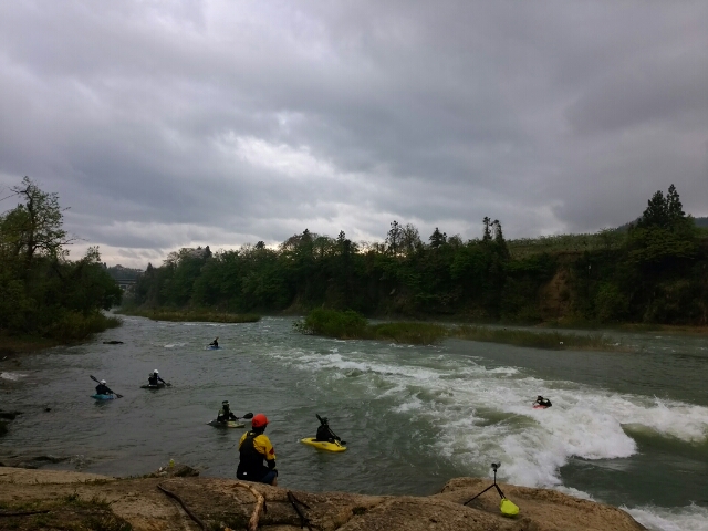 本日も朝日町最上川でフリースタイルカヤックレッスン
