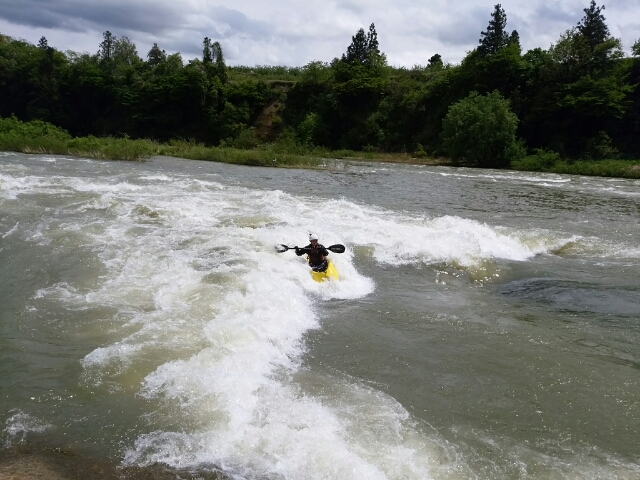 本日は山形朝日町最上川でフリースタイルカヤックレッスン